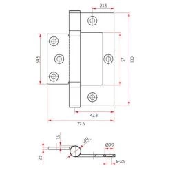 McCallum A174 Aluminium Heavy Duty Interfold Hinge – Satin Natural Anodised – 100x35x3.5mm