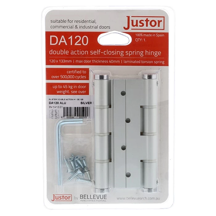 Justor DA120 Double Action Spring Hinge Anodized Silver