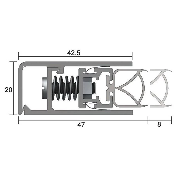 IS7090si self-adjusting and adjustable (spring-loaded) perimeter seal is designed for high performance acoustic applications. This seal can be fitted to the head and jambs of door frame perimeters in lieu of door stops, where frames are non fire-rated. It’s unique spring loaded mechanism, automatically self-adjusts to cater for movement or uneven doors. It is also mechanically adjustable to ensure the desired seal is maintained. Durable polypropylene fins are incorporated within the gasket housing to provide additional smoke and acoustic sealing properties. An aesthetic, anodised aluminium tamper-proof cover plate simply clips onto the main carrier to conceal fixings.
