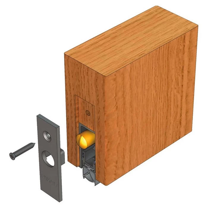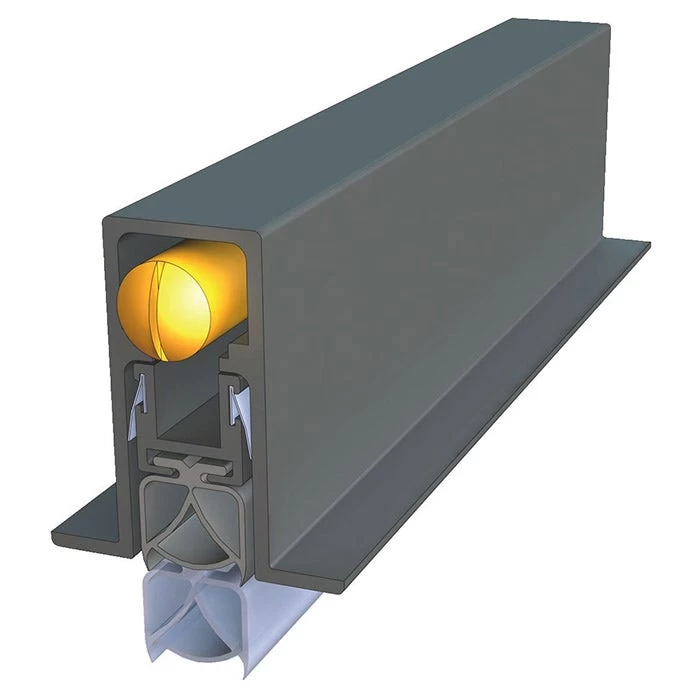 A heavy duty, automatic door bottom seal which is fully-mortised into the bottom edge of single action doors. The seal has a spring loaded mechanism which lifts the seal clear of the floor as soon as the door is opened. Pressure against the door jamb on the adjustable brass strike button operates the seal automatically. The seal is mounted into a 43mm deep x 21mm wide machined groove along the underside of the door. The seal is screw-fixed into position through the mounting flanges. Aesthetic, rigid nylon push-fit end plates (or screw-fixed cast aluminium end plates) ensure longevity of the seal mechanism. The seal contains a high efficiency mechanism to assist with the closing force requirements detailed in AS1428/1 (Design for Access and Mobility).