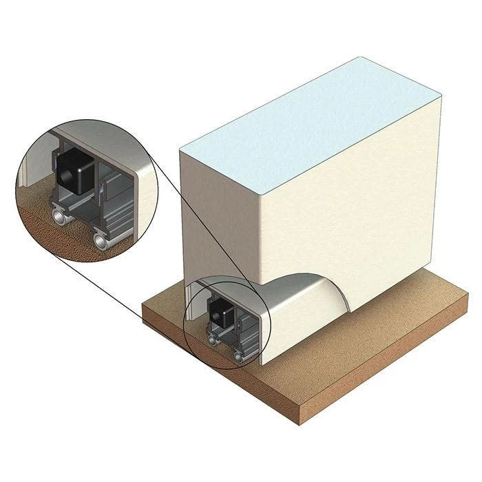 A fully-mortised, automatic “flat back” seal to suit installation to aluminium door rails for single action doors. It operates automatically by a spring loaded mechanism which lifts the seal clear of the floor as soon as the door is opened by a few millimetres. The seal operates automatically by pressure against the door jamb on its adjustable strike button.