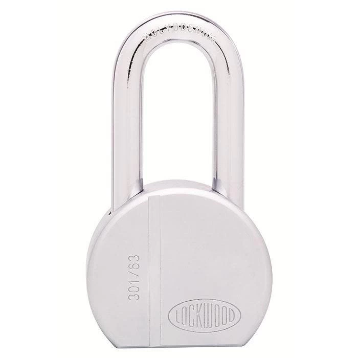 The Lockwood Maximum Security 301 Series Steel Padlock features a high strength steel shackle. Â