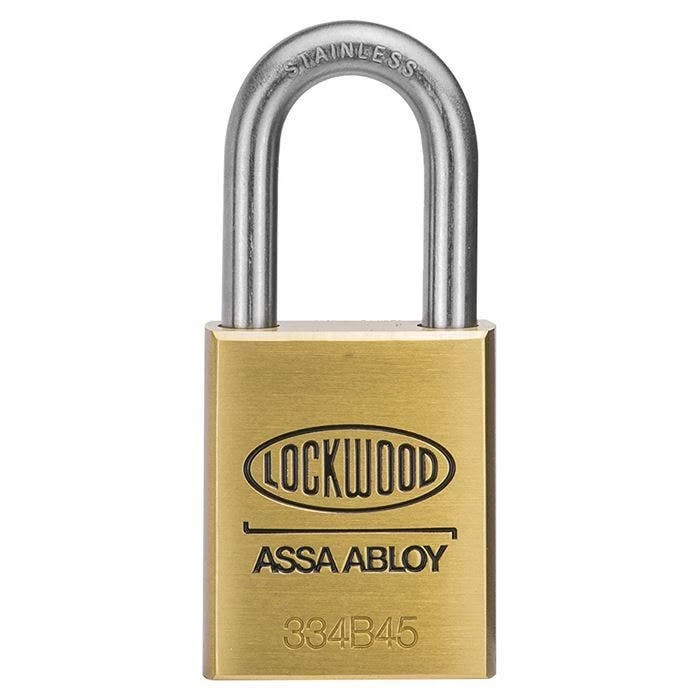 Lockwood 334 Brass 45mm Padlock 38mm Stainless Steel Shackle 5 Pin Keyed to Differ