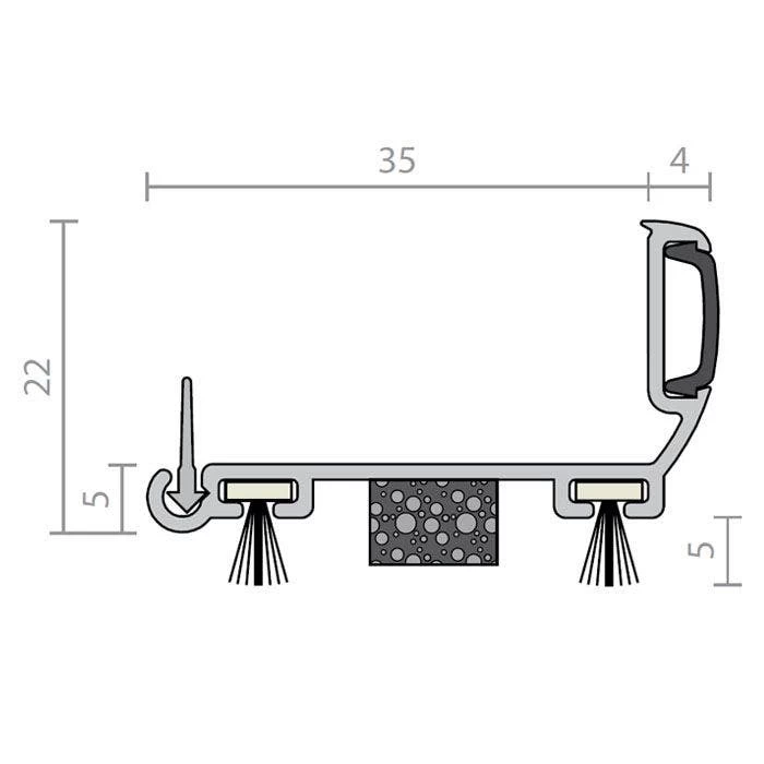 Can be used in conjunction with a double row of RP2 seals fitted into grooves in the door bottom edge or face mount RP74 to achieve a complete sealing system.