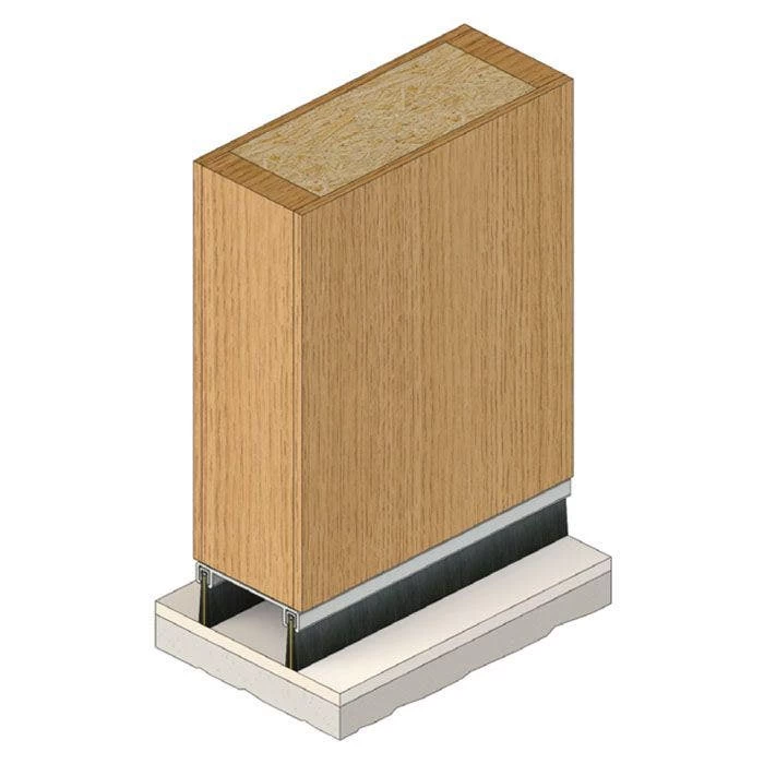 A heavy duty medium temperature smoke door bottom seal. The seal is achieved by a pair of nylon brush strips with a medium temperature smoke barrier. The seal can be checked out or drilled to accommodate the pivot, thereby providing a continuous seal. Can be used in conjunction with RP130Si, other Raven perimeter seals and threshold plates.