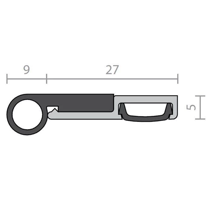 A S.E. EPDM compression seal ideal for smoke and weather applications on butt hinged doors. Can be mitred or butt jointed for a neat finish. Its aluminium carrier is sturdy and slotted for adjustment with concealed fixings. It is quick and easy to install on door stops around the jamb and head and can be fitted without removing the door.