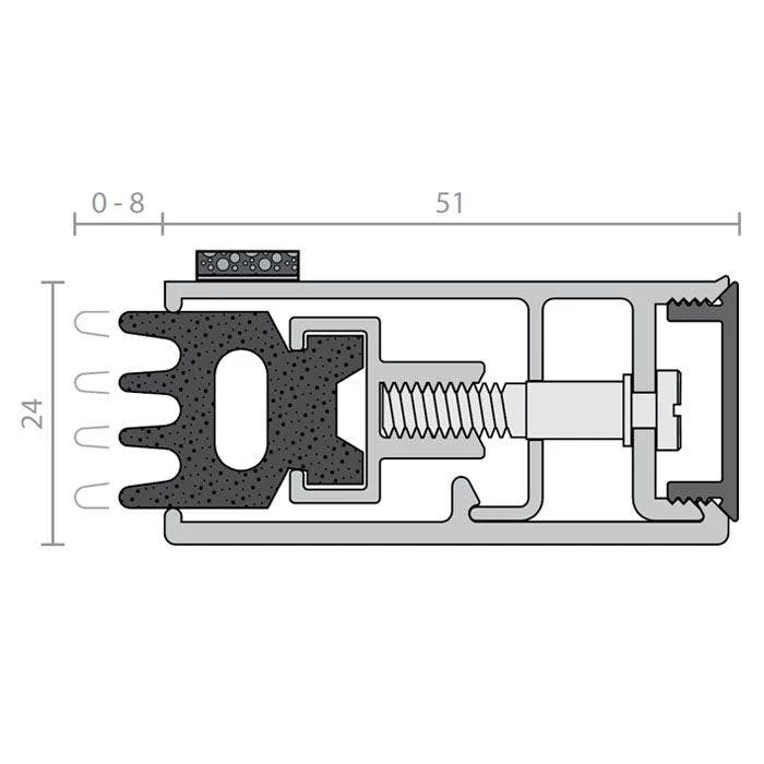 Granted an Australian Design Award, the RP24 is an effective door stop seal for noise, light and smoke. It can be butt jointed for a neatly finished continuous seal, replacing the conventional doorstop on metal or timber framed doors. With tamper proof concealed fixings, the RP24 utilises independently adjustable screws to achieve up to 8mm sealing adjustment for maximum noise control. The closed cell S.E. EPDM seal only requires normal door closing force.