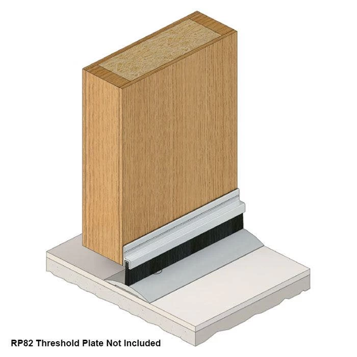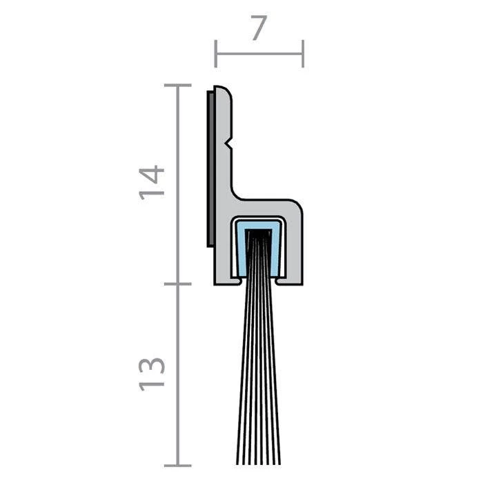 A nylon brush strip seal with an anodised aluminium carrier that mounts to the inside or outside of a door.