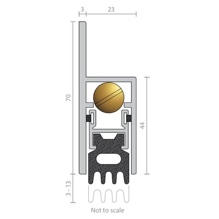 A heavy duty, automatic door bottom seal that is spring loaded to lift clear of the floor when the door is opened. It is self levelling and reversible for left and right handed operation. Acoustically designed, it features an EPDM foam gasket for acoustic door applications and doubles as a kick plate when semi-morticed. Operated automatically by pressure against the door jamb or stop on its adjustable brass strike.
