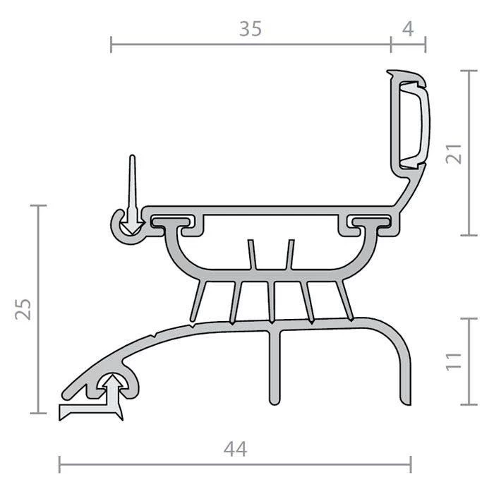 Can be fitted to the square cut bottom of a door without removing the door, provided there is an existing gap of 25mm. It is quick and easy to fit to both door and sill.