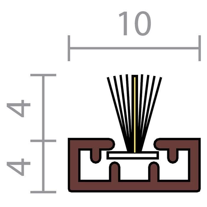 A woven pile sweep seal designed to fit into a groove around the perimeter of a timber door or frame to reduce air movement. This unobtrusive seal is discrete in appearance and does not restrict the doors operation.