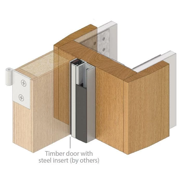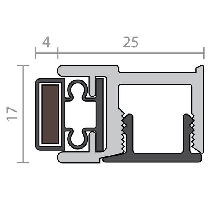 A refrigeration type vinyl magnetic strip in an anodised aluminium housing with concealed fixings. RP85 provides a tight seal for steel clad doors and jambs and may be used as a stop. For timber doors, a thin steel strip can be attached to the door face. The magnetic strip has sufficient closing strength that latches may not be required.