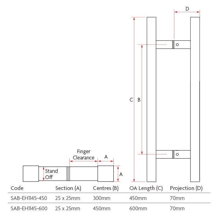 Sabre 1145 450mm Entrance Handle Set Satin Stainless Steel