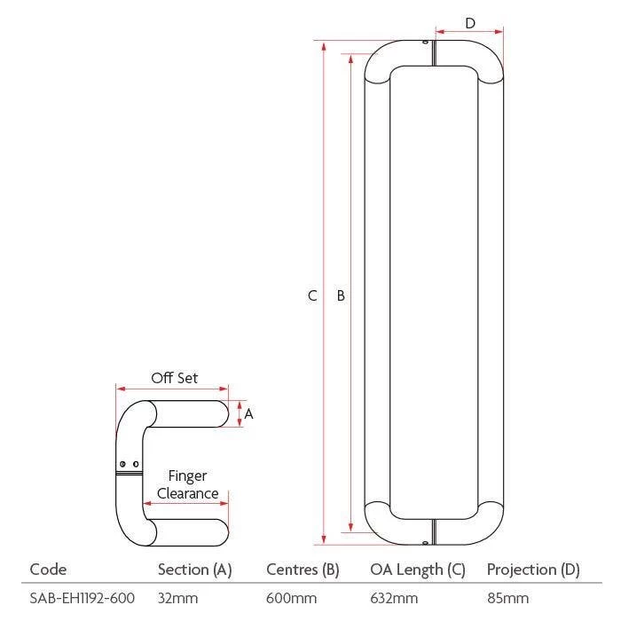 Sabre 1192 600mm Entrance Handle Set Satin Stainless Steel