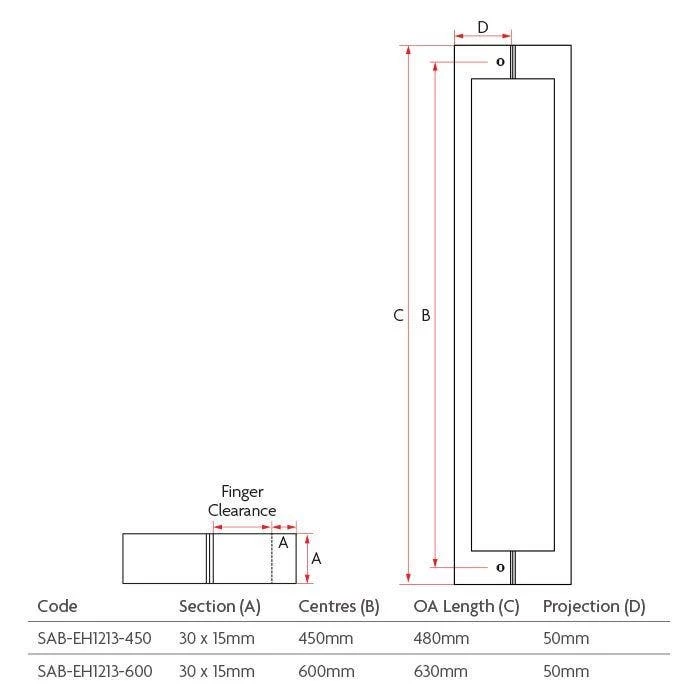 Sabre 1213 450mm Entrance Handle Set Satin Stainless Steel