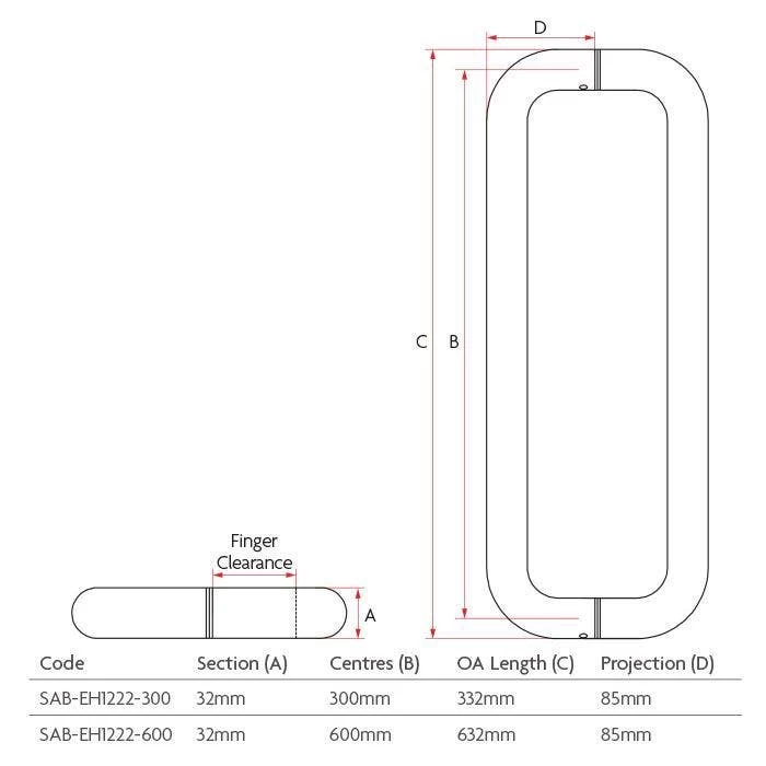Sabre 1222 300mm Entrance Handle Set Satin Stainless Steel