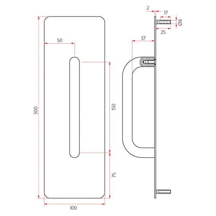 - Dimensions – 300mm L x 100mm W x 2mm T