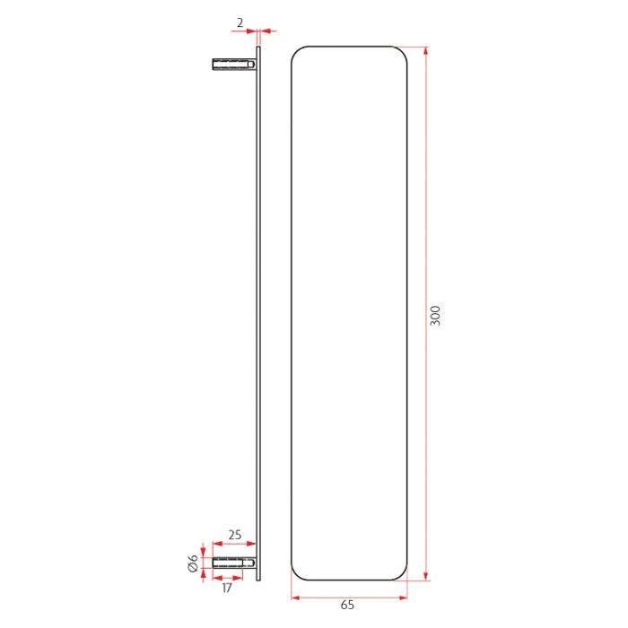 - Dimensions – 300mm L x 65mm W x 2mm T
