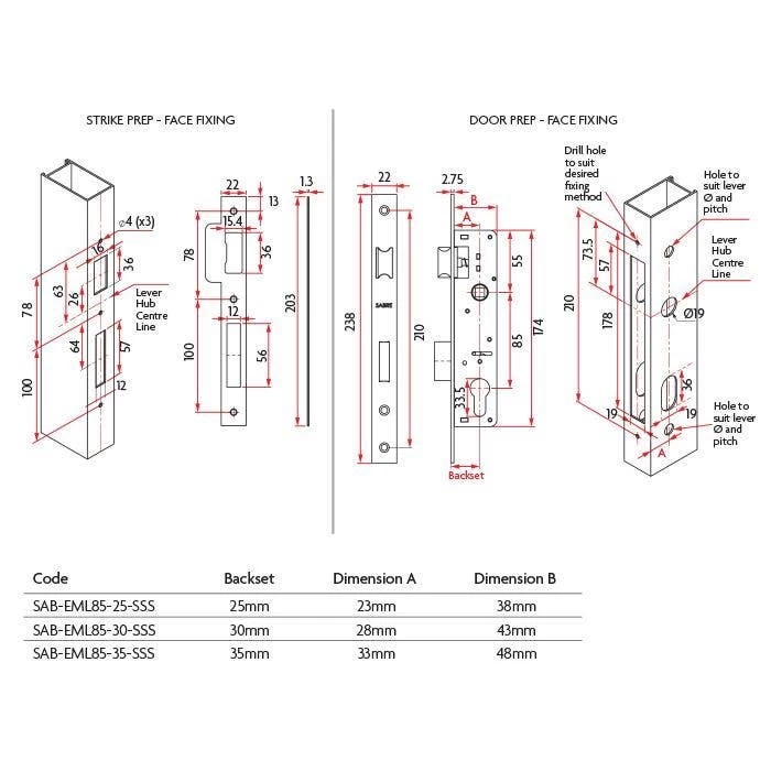 Sabre 35mm Euro Mortice Lock Satin Stainless Steel