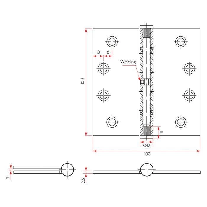 Sabre 100mm x 100mm Ball Bearing Butt Hinge Satin Stainless Steel
