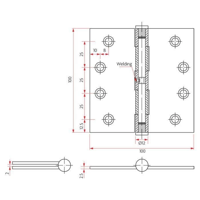 Sabre 100mm x 100mm Fixed Pin Butt Hinge Satin Stainless Steel