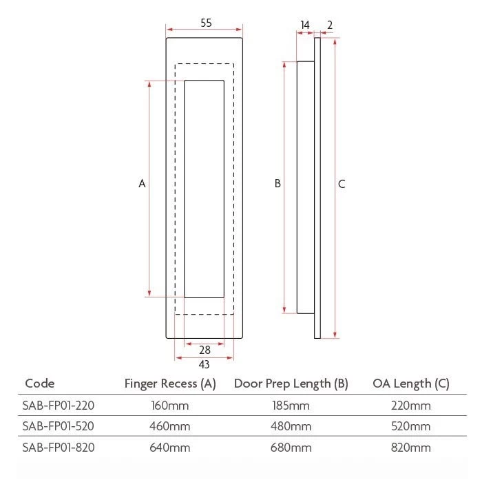 Sabre FP01-220 Flush Pull Satin Stainless Steel