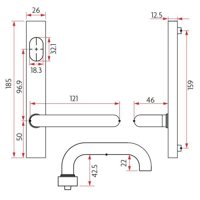 - Dimensions – 185mm L x 26mm W x 12mm D