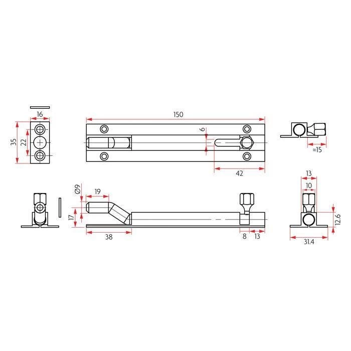 Scope BB03 Necked Barrel Bolt Satin Chrome