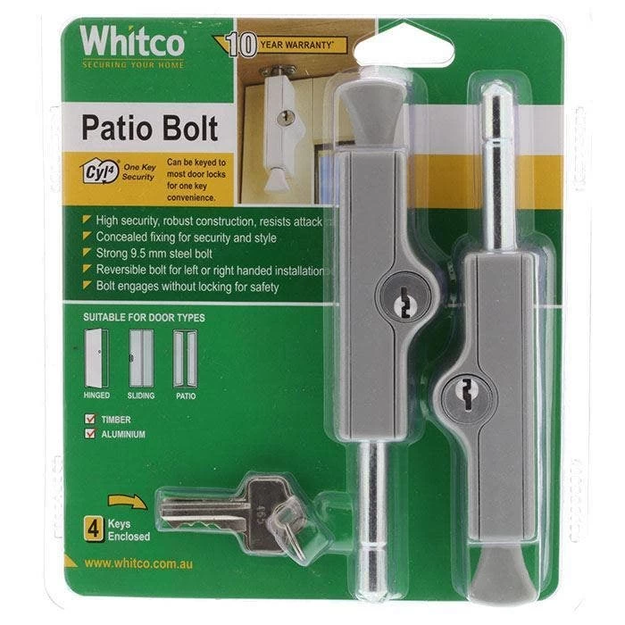 Whitco W2206811 Patio Bolt Twin Pack Silver